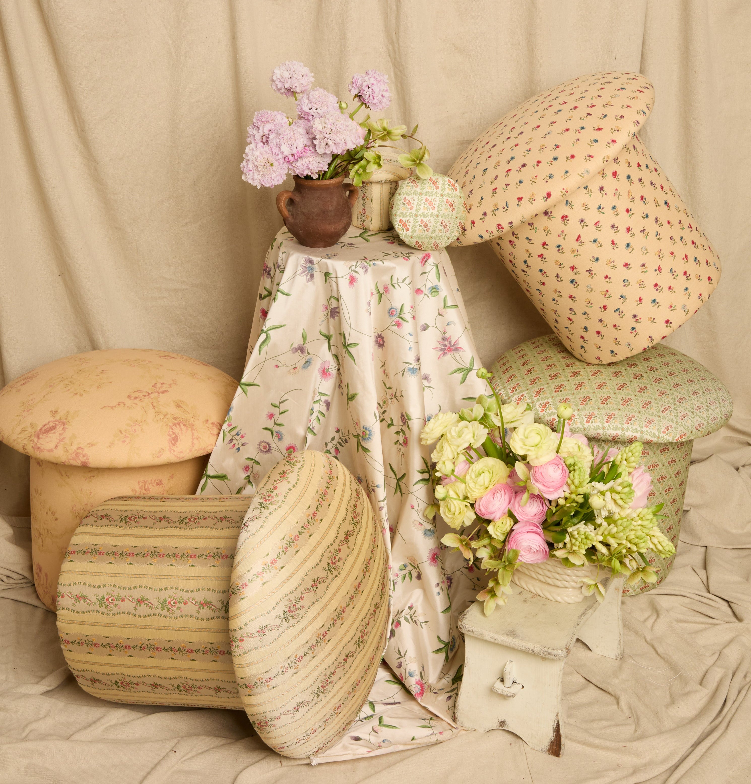 Assieds-toii – a favourite new homeware discovery that exclusively makes mushroom-shaped stools in kitsch, retro prints.